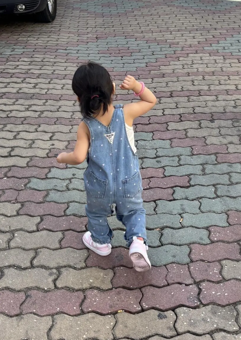 Este peto de Baby B’gosh en denim knit azul con estampado de corazones es perfecto para darle un toque divertido y dulce al look de tu pequeña. Suave y cómodo, será un favorito en su guardarropa.