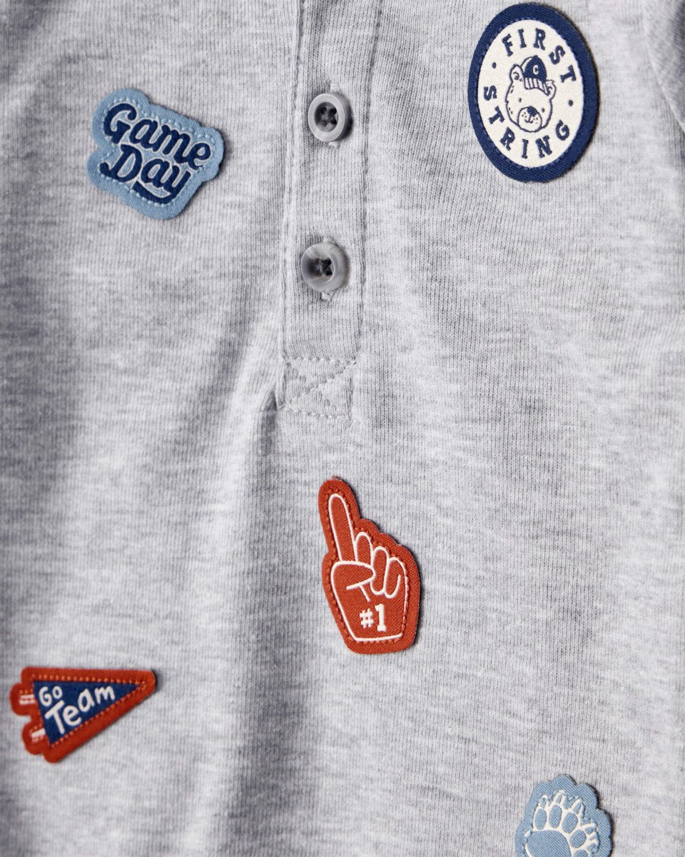 Este conjunto deportivo de Carter’s es ideal para mantener a tu pequeño cómodo y con estilo. Incluye un body de manga larga con divertido estampado deportivo y un pantalón a juego de algodón suave, perfectos para cualquier ocasión.