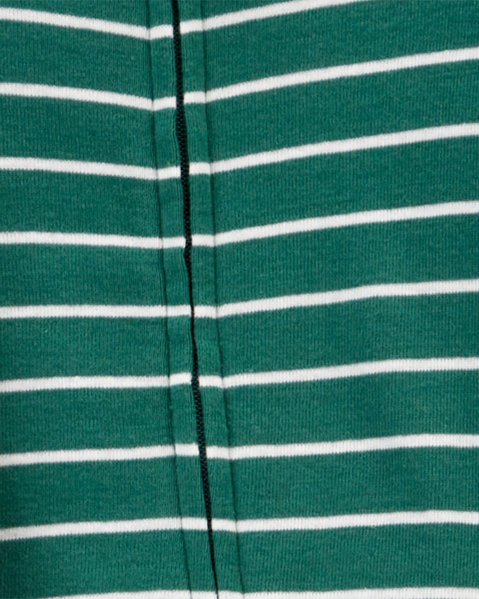 Set of 2 cotton onesie pajamas with feet, dinosaur designs and stripes in green