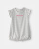 Relaxed days can also be stylish with this charming one-piece romper. Its light gray hue with horizontal stripes provides a modern and easy-to-match look, while the embossed "Momma's Mini" message adds a fun and contemporary touch. Crafted from a soft and lightweight fabric, it offers all-day comfort and allows for freedom of movement so that the baby can explore naturally. The practical design with snaps makes dressing easy, making it a versatile option for any time of year.