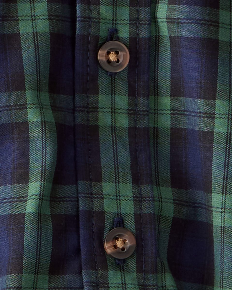 Conjunto de tres piezas para bebé niño que incluye body de manga larga con estampado de cuadros verdes y beige, pajarita a juego y pantalón cómodo. Confeccionado en algodón suave y transpirable para mantener la comodidad durante todo el día. Ideal para salidas casuales o eventos especiales, con cierres a presión que facilitan el cambio.