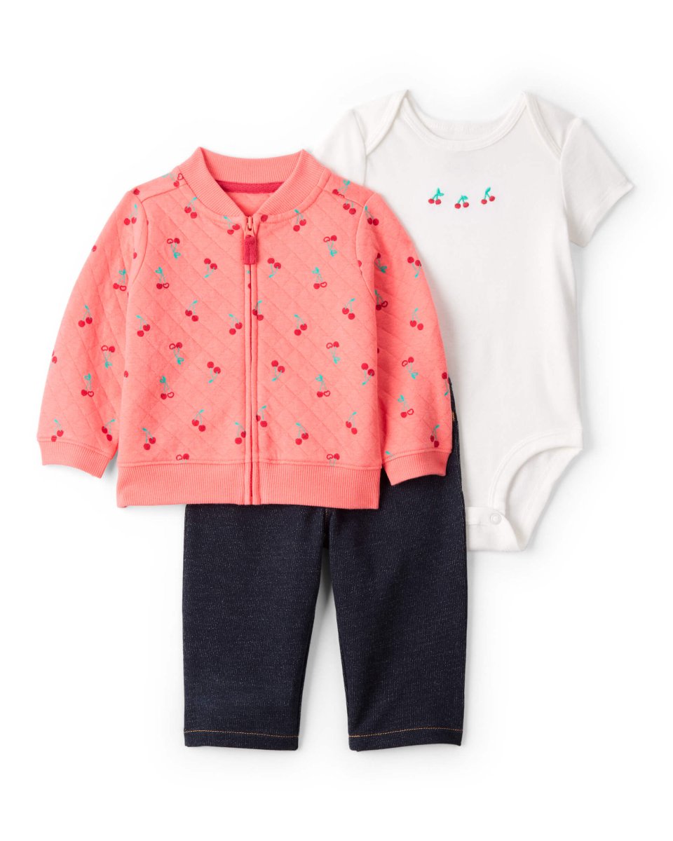 Este conjunto de 3 piezas ofrece la combinación ideal entre comodidad y estilo. Pensado para acompañar al bebé en cualquier momento del día, incluye prendas suaves, fáciles de mezclar y con un diseño encantador que completa el look sin esfuerzo.