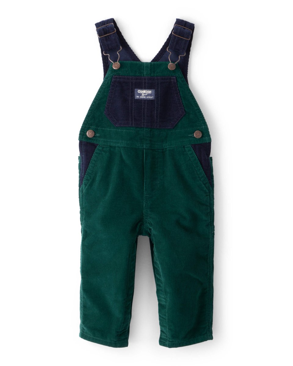 Peto de pana 100% algodón, ideal para cualquier aventura del día a día. Presenta tirantes ajustables y cierres funcionales en la cintura para facilitar el vestir, además de un bolsillo frontal tipo babero que aporta un toque extra de estilo. Fácil de combinar con camisetas o jerséis, es una prenda versátil y duradera con el sello clásico de OshKosh.