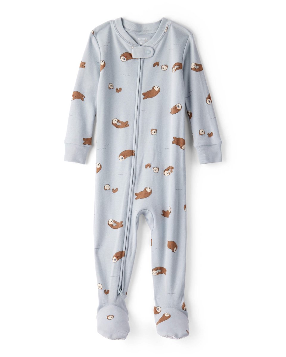 Este pijama de algodón en tonos azules ofrece suavidad y un diseño calmado para acompañar las noches del bebé. Su corte cómodo y su tejido transpirable lo convierten en una prenda ideal para descansar sin interrupciones.
