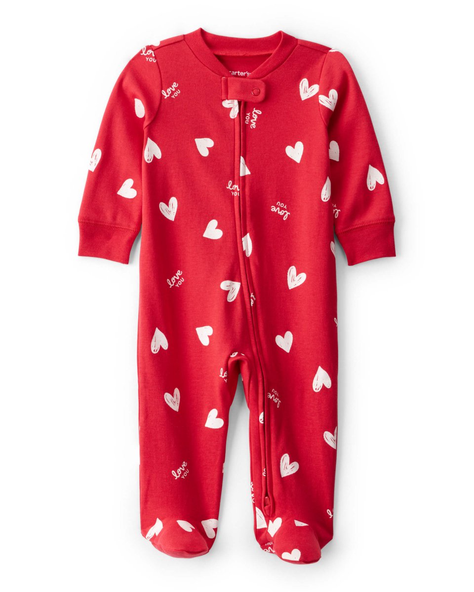 Haz que la hora de dormir sea aún más acogedora con este pijama estampado de corazones rojos. Elaborado con algodón suave y transpirable, mantiene a tu bebé calentito sin perder ligereza. El ajuste ceñido y los puños elásticos evitan que la prenda se suba durante la noche.